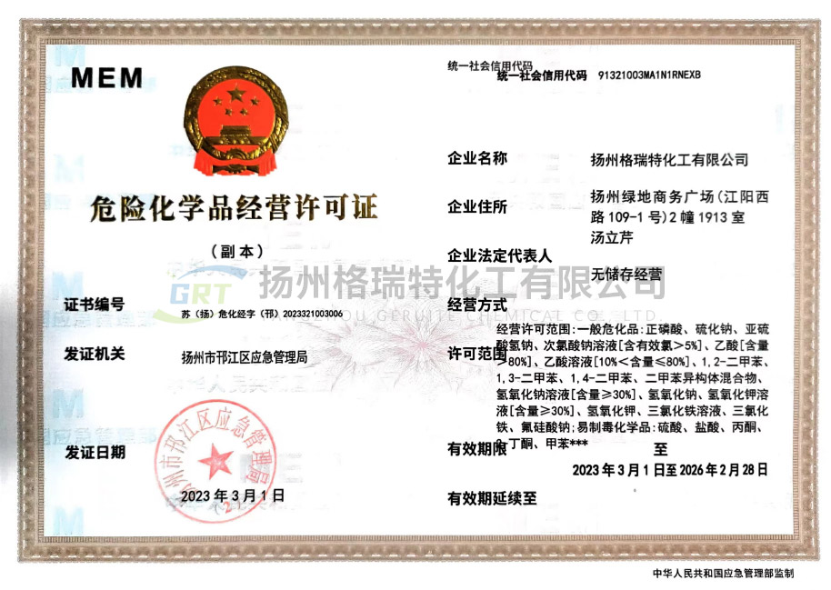 揚州格瑞特化工有限公司生產(chǎn)工廠坐落于江蘇省海安縣胡集工業(yè)園區(qū)和海安精細化工工業(yè)園。總公司成立于1999年,是集科、工、貿(mào)為一體的現(xiàn)代化生產(chǎn)型企業(yè)。專業(yè)致力于水處理劑、紡織印染助劑、化纖油劑等產(chǎn)品的科研、開發(fā)、生產(chǎn)和銷售。總公司占地面積40000m,建有現(xiàn)代化標準廠房,擁有先進的生產(chǎn)設(shè)備。年產(chǎn)各類水處理劑系列產(chǎn)品12000噸,紡織印染助劑5000噸,產(chǎn)品12個系列40多個品種。總公司注重技術(shù)投入,設(shè)立產(chǎn)品研發(fā)中心和環(huán)保運營中心,聘請了多位專家為公司技術(shù)顧問,并和多個重點院校建立了長期技術(shù)合作開發(fā)關(guān)系,是南通大學(xué)、江南大學(xué)、南京工業(yè)大學(xué)產(chǎn)學(xué)研基地。